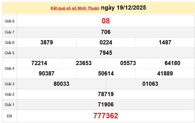 XSNT 19/12, KQXSNT 19/12, kết quả xổ số Ninh thuận ngày 19/12/2025