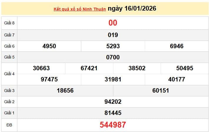 XSNT 16/1, KQXSNT 16/1. Xem lại kết quả xổ số Ninh thuận ngày 16/1/2026