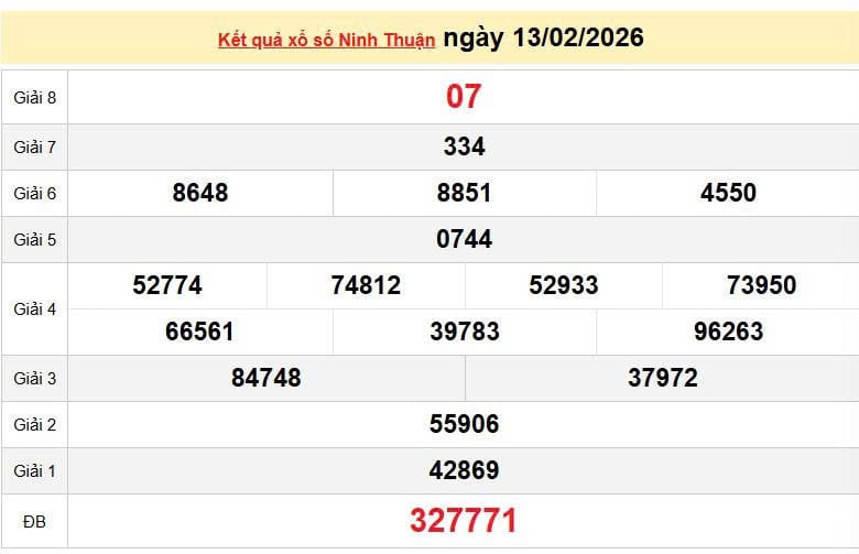 XSNT 13/2, KQXSNT 13/2. Xem lại kết quả xổ số Ninh thuận ngày 13/2/2026