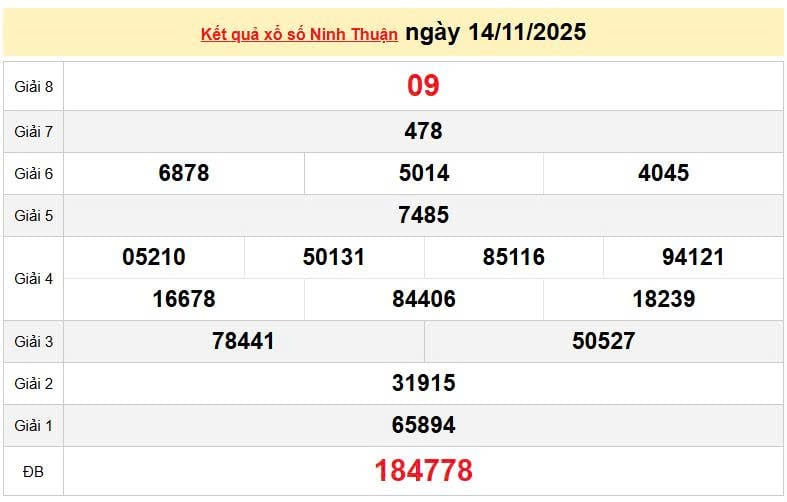XSNT 14/11, KQXSNT 14/11. Xem lại kết quả xổ số Ninh thuận ngày 14/11/2025