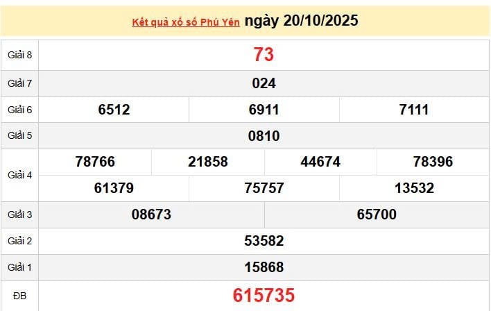 XSPY 20/10, KQXSPY 20/10. Xem lại kết quả xổ số Phú Yên ngày 20/10/2025