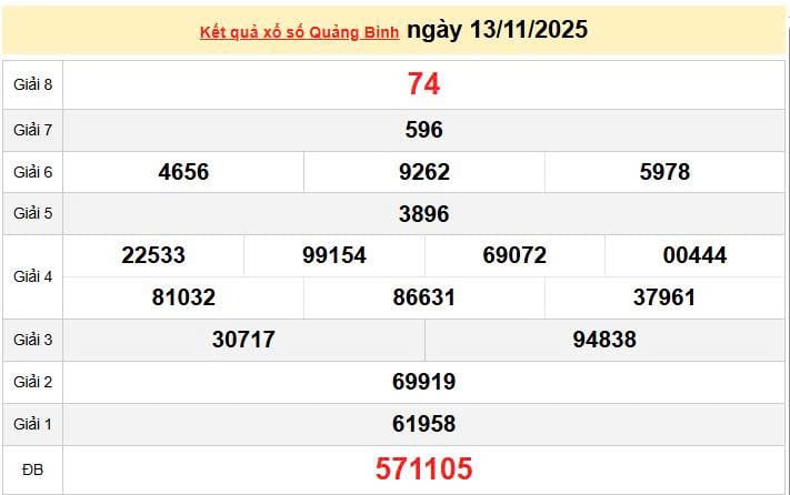 XSQB 13/11, KQXSQB 13/11. Xem lại kết quả xổ số Quảng Bình ngày 13/11/2025