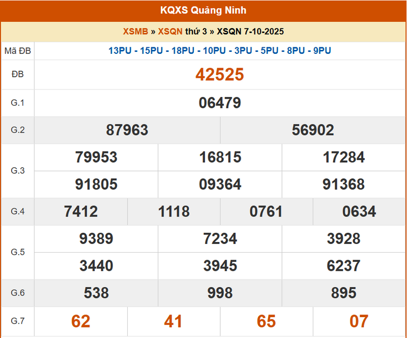 XSQN 7/10, KQXSQN 7/10. Xem lại kết quả xổ số Quảng Ninh ngày 7/10/2025