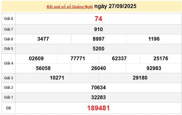 XSQNG 27/9, KQXSQNG 27/9. Xem lại kết quả xổ số Quảng Ngãi ngày 27/9/2025