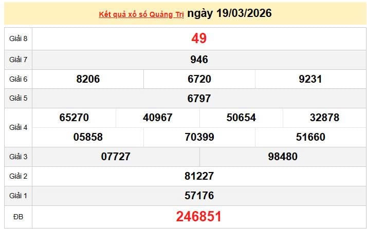 XSQT 19/3, KQXSQT 19/3. Xem lại kết quả xổ số Quảng Trị ngày 19/3/2026