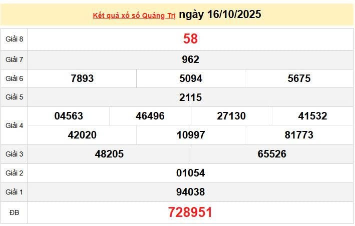 XSQT 16/10, KQXSQT 16/10. Xem lại kết quả xổ số Quảng Trị ngày 16/10/2025