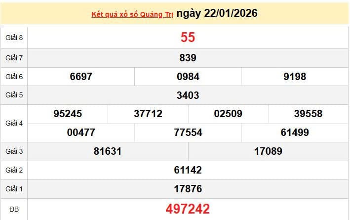 XSQT 22/1, KQXSQT 22/1. Xem lại kết quả xổ số Quảng Trị ngày 22/1/2026