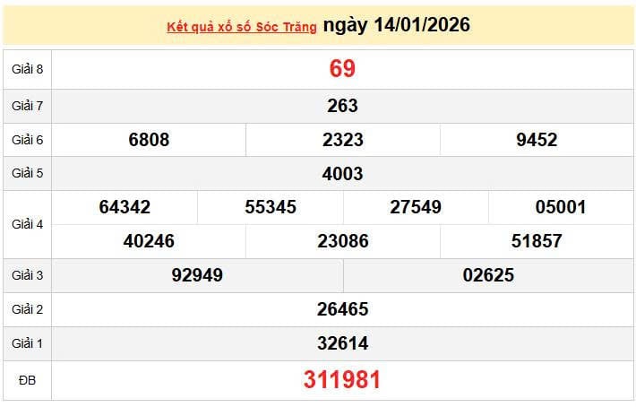 XSST 14/1, KQXSST 14/1, kết quả xổ số Sóc Trăng ngày 14/1/2026