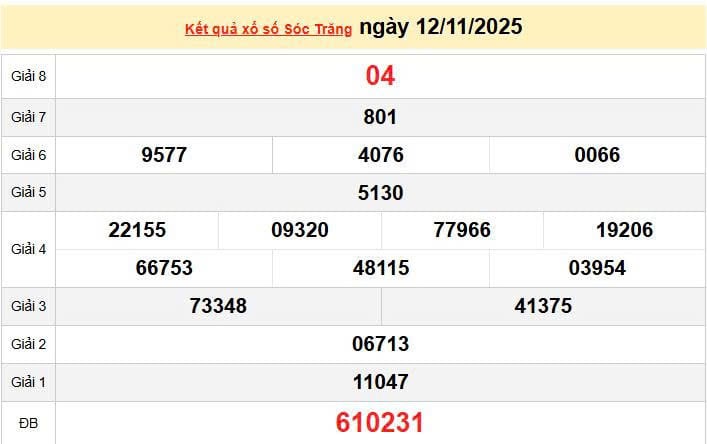 XSST 12/11, KQXSST 12/11. Xem lại kết quả xổ số Sóc Trăng ngày 12/11/2025