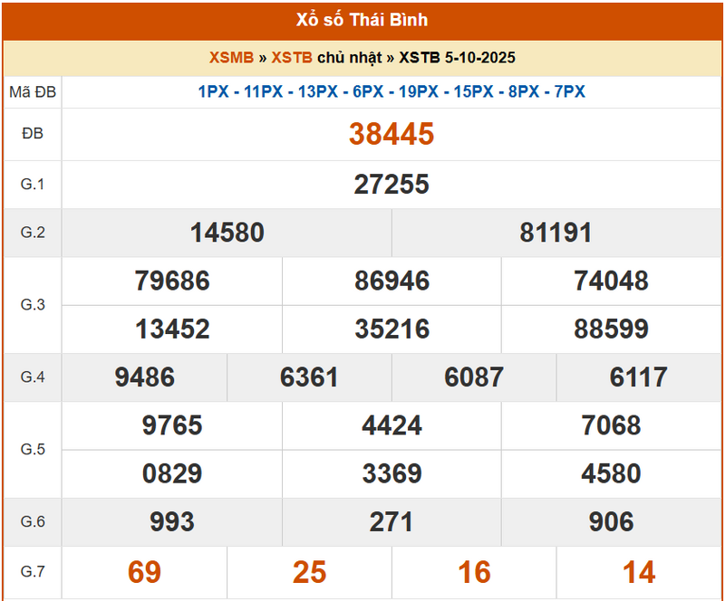 XSTB 5/10, KQXSTB 5/10, kết quả xổ số Thái Bình ngày 5/10/2025