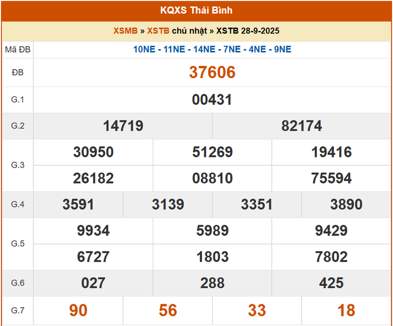 XSTB 28/9, KQXSTB 28/9. Xem lại kết quả xổ số Thái Bình ngày 28/9/2025