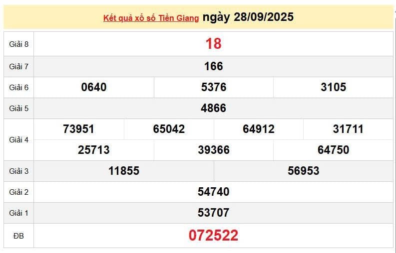 XSTG 28/9, KQXSTG 28/9. Xem lại kết quả xổ số Tiền Giang ngày 28/9/2025