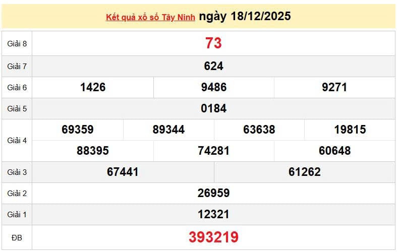 XSTN 18/12, KQXSTN 18/12, Xem lại kết quả xổ số Tây Ninh ngày 18/12/2025