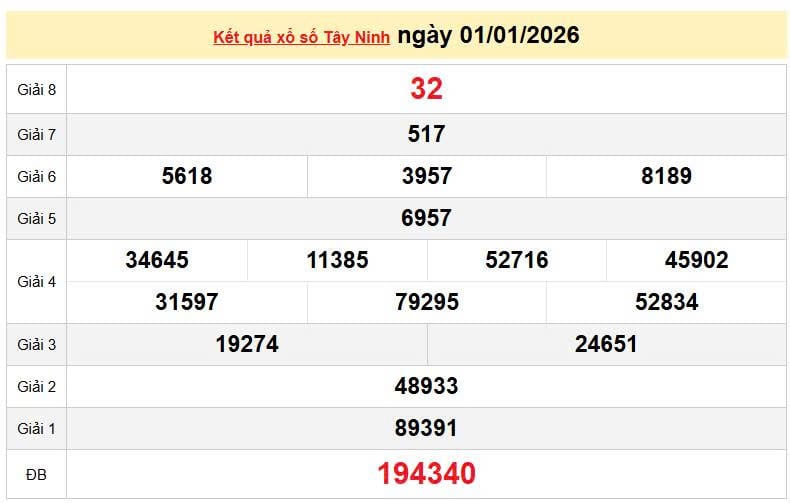 XSTN 31/12, KQXSTN 31/12, Xem lại kết quả xổ số Tây Ninh ngày 31/12/2025