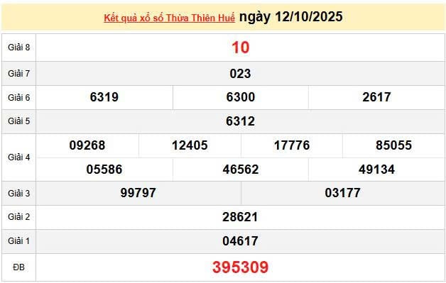 XSTHH 12/10, KQXSTHH 12/10. Xem lại kết quả xổ số Thừa Thiên Huế ngày 12/10/2025