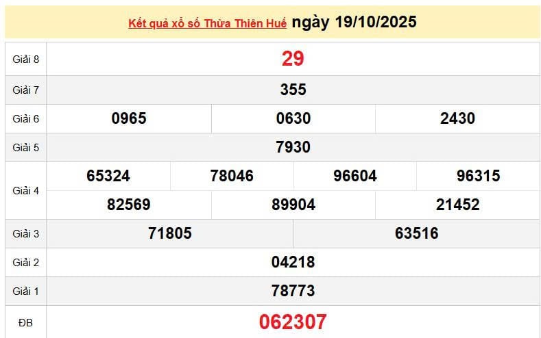 XSTHH 19/10, KQXSTHH 19/10. Xem lại kết quả xổ số Thừa Thiên Huế ngày 19/10/2025