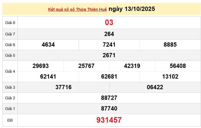 XSTHH 20/10, KQXSTHH 20/10. Xem lại kết quả xổ số Thừa Thiên Huế ngày 20/10/2025