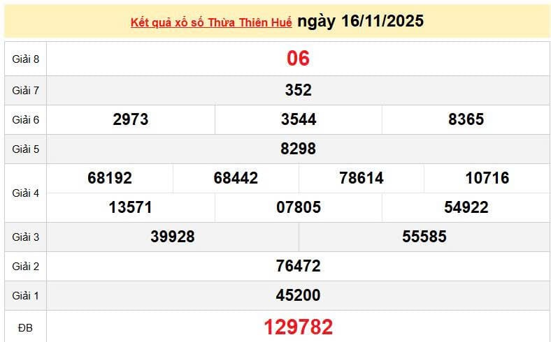 XSTTH 16/11, KQXSTTH 16/11. Xem lại kết quả xổ số Thừa Thiên Huế ngày 16/11/2025
