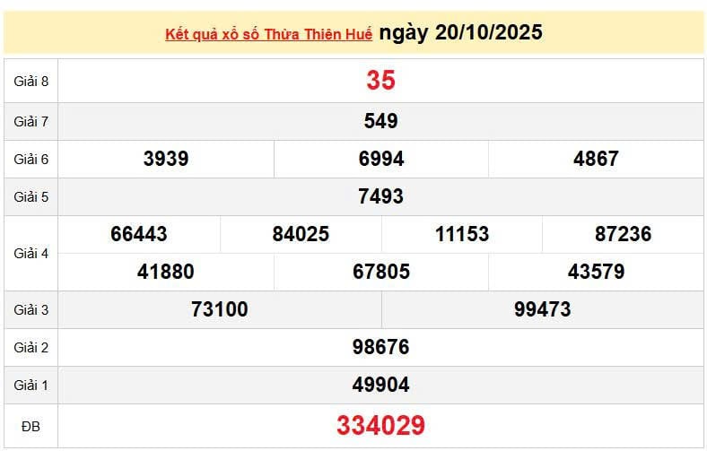 XSTHH 20/10, KQXSTHH 20/10. Xem lại kết quả xổ số Thừa Thiên Huế ngày 20/10/2025