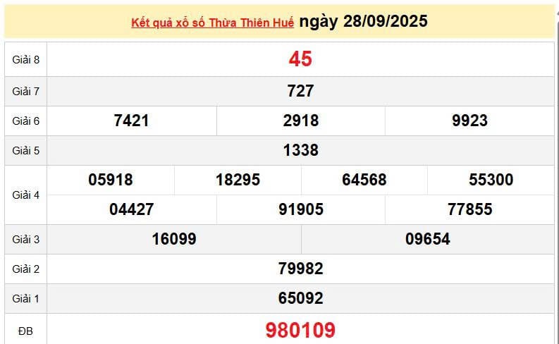 XSTHH 28/9, KQXSTHH 28/9. Xem lại kết quả xổ số Thừa Thiên Huế ngày 28/9/2025