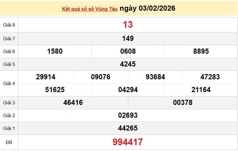 XSVT 3/2, KQXSVT 3/2. Xem lại kết quả xổ số Vũng Tàu ngày 3/2/2026