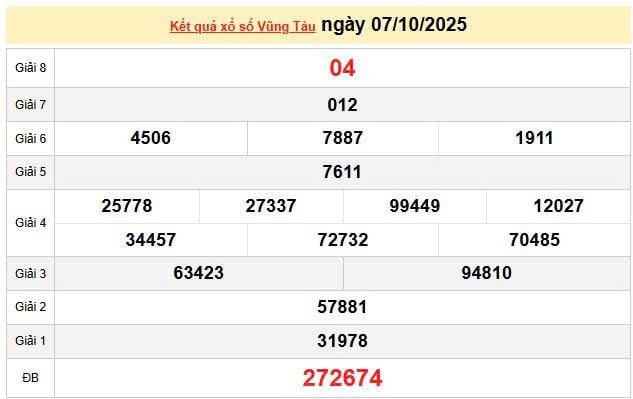 XSVT 7/10 , KQXSVT 7/10. Xem lại kết quả xổ số Vũng Tàu ngày 7/10/2025