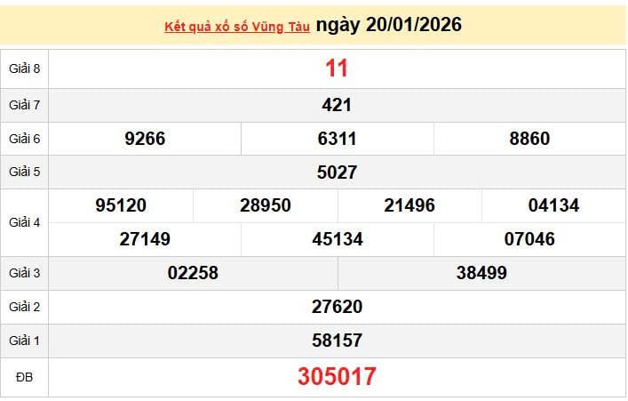 XSVT 20/1, KQXSVT 20/1, kết quả xổ số Vũng Tàu ngày 20/1/2026
