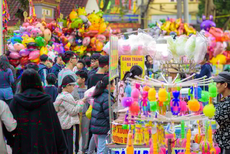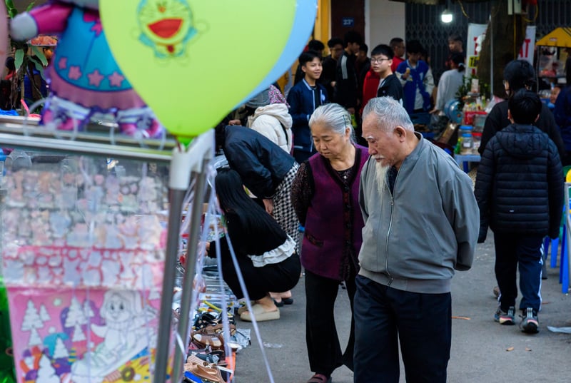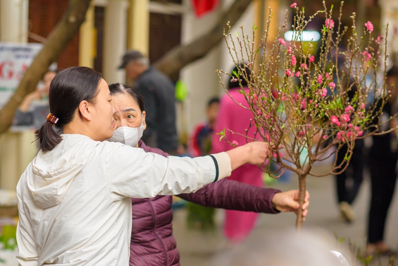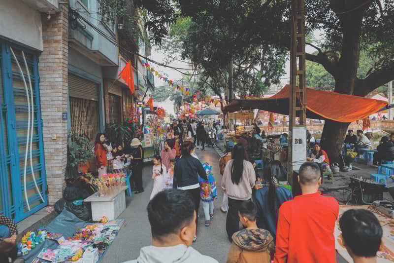 Không chỉ cư dân gốc làng Mọc, nhiều người dân từ các khu vực lân cận cũng tìm đến phiên chợ như một cách trải nghiệm không khí Tết xưa giữa lòng Hà Nội hiện đại. Tiếng chào mời, mặc cả xen lẫn tiếng cười nói rôm rả khiến không gian đình làng trở nên sống động.