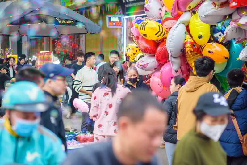 Dòng người nối dài quanh khu vực đình Quan Nhân trong ngày 27 tháng Chạp. Ảnh: Phong Nguyễn