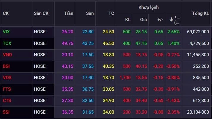 Ngoài TCX, nhóm cổ phiếu chứng khoán chỉ còn lại VIX (+2,7%) có mức hồi phục tốt. Nhiều cổ phiếu cùng ngành khác như SSI (-2,4%), VCI (-1,6%), DSE (-1,7%), DSC (-1,6%)... vẫn chưa kết thúc trạng thái dò đáy sau đợt sóng nâng hạng thị trường vừa qua.
