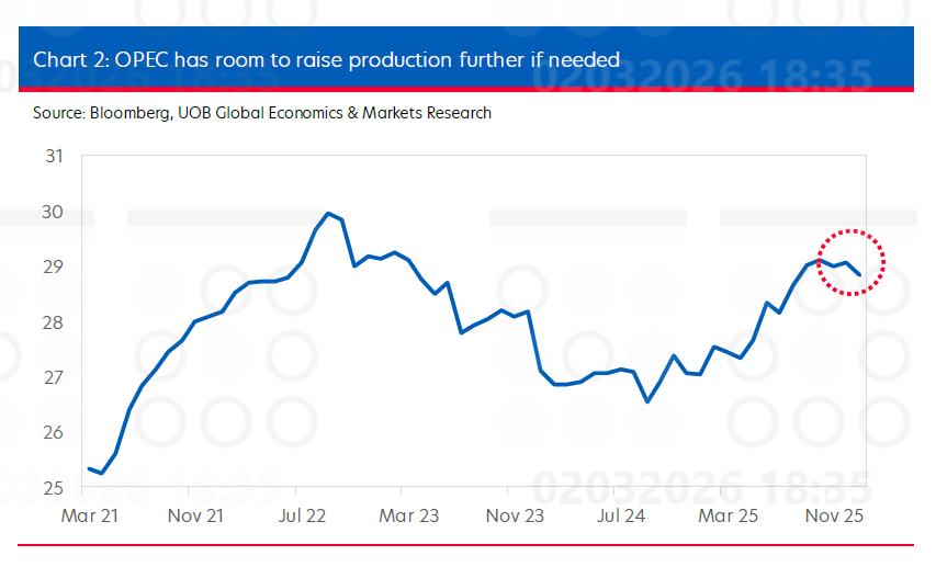 Theo ông Heng Koon How, mặc dù phản ứng thận trọng của OPEC gây thất vọng với một số bên nhưng cần lưu ý rằng, tổng cộng OPEC đã khôi phục khoảng 1,65 triệu bpd so với mức “cắt giảm tự nguyện” 2,2 triệu bpd được triển khai từ năm 2023. Nói cách khác, OPEC vẫn còn dư địa đáng kể để tăng sản lượng khi cần thiết.