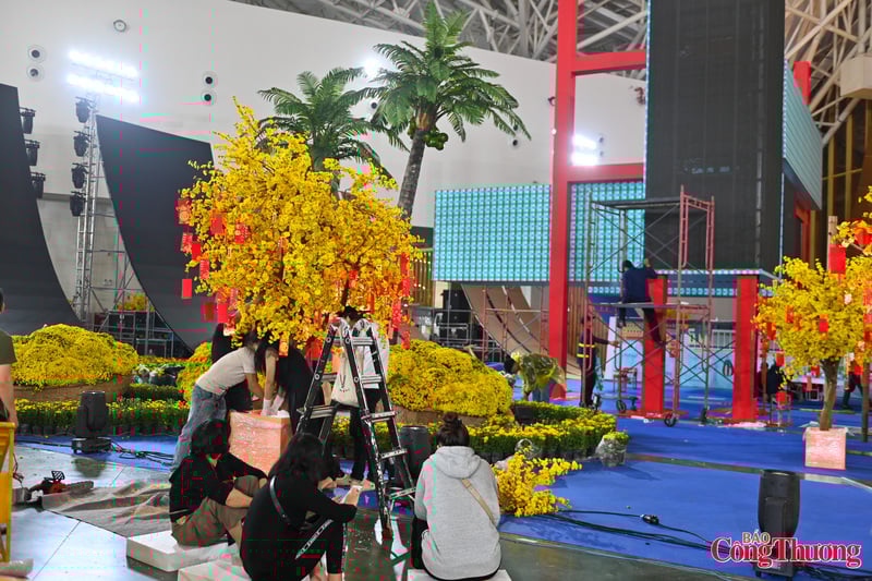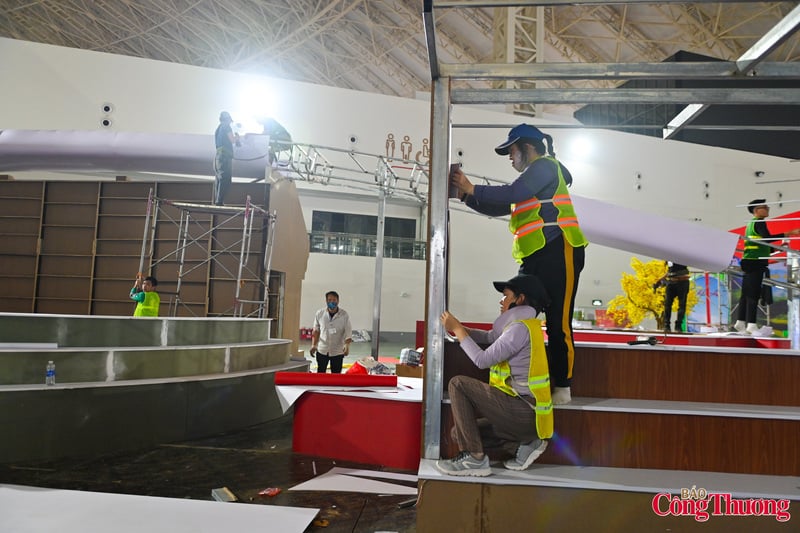 Ghi nhận của phóng viên Báo Công Thương, hàng trăm công nhân, kỹ sư, cán bộ kỹ thuật đang miệt mài thi công xuyên đêm, chạy đua với thời gian để kịp tiến độ, bảo đảm chất lượng cho sự kiện xúc tiến thương mại quan trọng đầu năm.