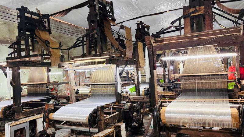 Khung cửi dệt lụa hoạt động liên tục, gìn giữ nhịp nghề truyền thống của làng Lụa Vạn Phúc. Ảnh: Nhật Chi