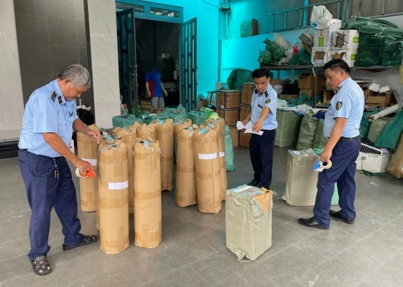 margin: 15px auto;" />Lực lượng Quản lý thị trường TP. Hồ Chí Minh kiểm tra một kho hàng vi phạm. Ảnh: QLTT