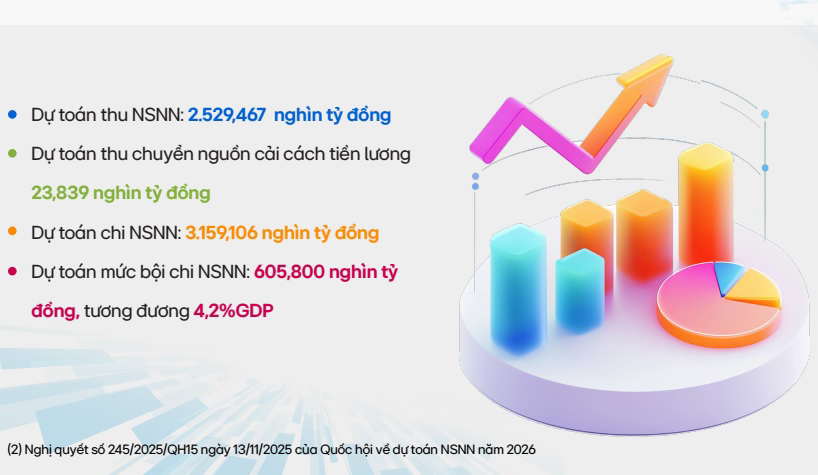 Với các thông tin được trình bày ngắn gọn, dễ hiểu thông qua các biểu đồ, đồ họa, Báo cáo cung cấp cho người dân những thông tin cơ bản nhất về một số chỉ tiêu kinh tế vĩ mô năm 2026, bức tranh tổng thể về NSNN năm 2026 và một số giải pháp chủ yếu điều hành nhiệm vụ tài chính - ngân sách nhà nước năm 2026.