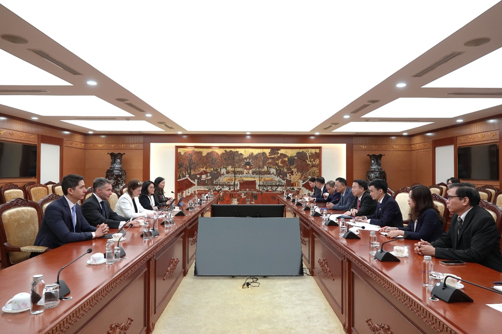 Trao đổi tại buổi làm việc, Thứ trưởng Nguyễn Đức Chi cho biết, năm 2025 kinh tế Việt Nam đạt nhiều kết quả tích cực trong bối cảnh khu vực còn không ít khó khăn. Tăng trưởng GDP đạt trên 8,05%; các cân đối vĩ mô được giữ vững nhờ chính sách điều hành linh hoạt; thu ngân sách nhà nước đạt mức cao kỷ lục trên 2,6 triệu tỷ đồng; lạm phát được kiểm soát. Hệ thống ngân hàng tiếp tục được cơ cấu lại theo hướng an toàn, xử lý các tổ chức tín dụng yếu kém, góp phần củng cố nền tảng ổn định cho thị trường tài chính.
