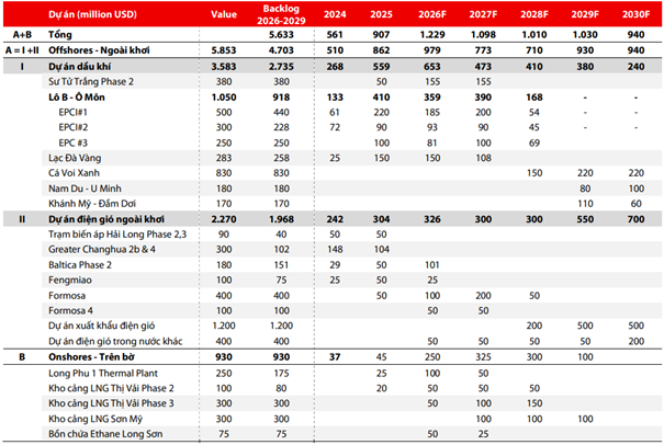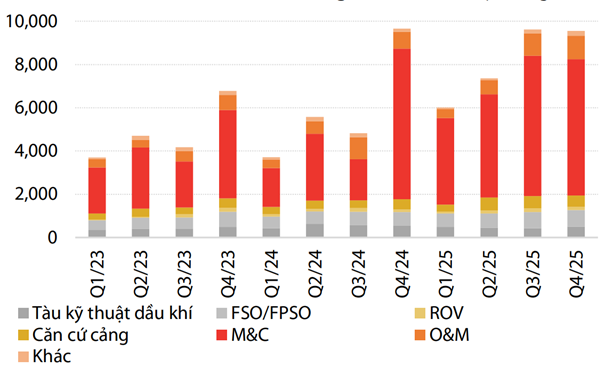 Theo ước tính của Chứng khoán Rồng Việt, tổng giá trị backlog các hợp đồng M&C giai đoạn 2026–2030 của PVS vào khoảng 5,6 tỷ USD, tạo nền tảng doanh thu cho nhiều năm tới.