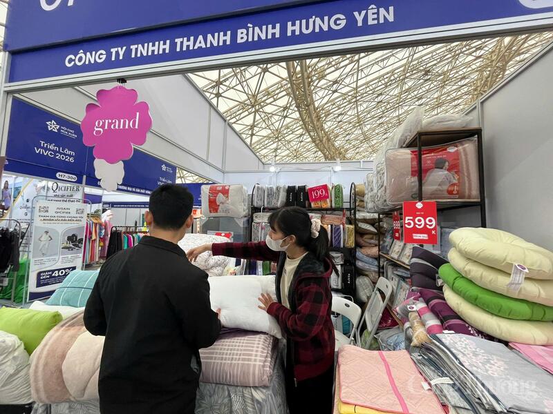 Tại Hội chợ Mùa Xuân lần thứ nhất năm 2026, bên cạnh các mặt hàng phục vụ nhu cầu mua sắm dịp đầu năm, nhóm sản phẩm chăn ga gối đệm ghi nhận sức hút rõ nét khi lượng người tiêu dùng tìm hiểu, trải nghiệm và mua sắm tăng cao ngay từ những ngày đầu.