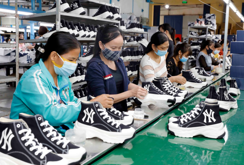 Sản xuất giày xuất khẩu tại Công ty giày Trường Xuân, Hà Nội. Ảnh: Trần Việt