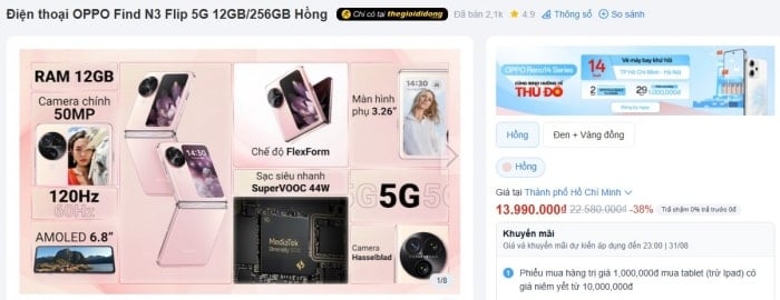 Trong phân khúc điện thoại gập vỏ sò, nếu Samsung là cái tên quen thuộc thì OPPO lại là thương hiệu được khách Việt đánh giá cao nhờ thiết kế tinh tế và mức giá "dễ thở" hơn. Hiện tại, OPPO Find N3 Flip – mẫu điện thoại gập nhỏ gọn đang gây sốt khi được phân phối chính hãng với mức giá chỉ 13,99 triệu đồng cho bản 12GB/256GB, rẻ hơn nhiều đối thủ và nằm trong top smartphone gập "đáng sở hữu nhất" thời điểm hiện tại.