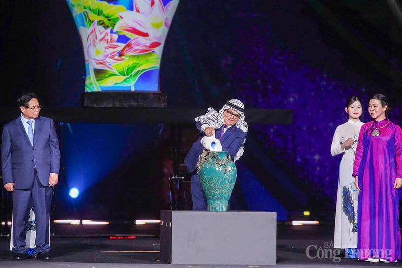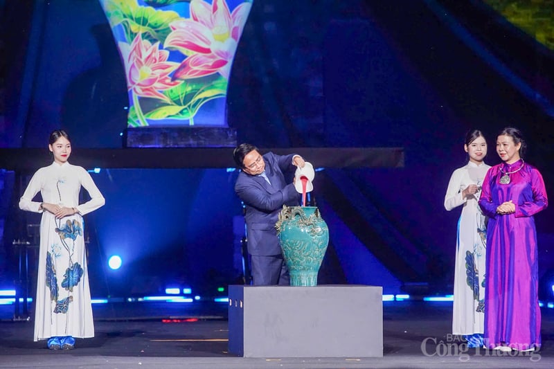 Thủ tướng Chính phủ thực hiện nghi thức đặc biệt (vẽ tranh gốm ngũ sắc) khai mạc lễ hội.