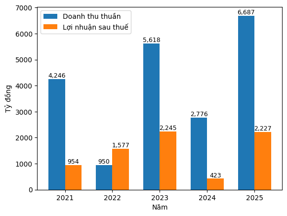 Lũy kế cả năm 2025, KBC đạt doanh thu thuần hơn 6.687 tỷ đồng, tăng 2,4 lần so với năm trước. Trong đó, mảng khu công nghiệp tiếp tục đóng vai trò trụ cột với doanh thu gần 4.396 tỷ đồng, gấp 3,5 lần cùng kỳ. Lợi nhuận sau thuế đạt trên 2.200 tỷ đồng, tăng hơn 5 lần và là mức cao thứ hai trong lịch sử hoạt động của doanh nghiệp.