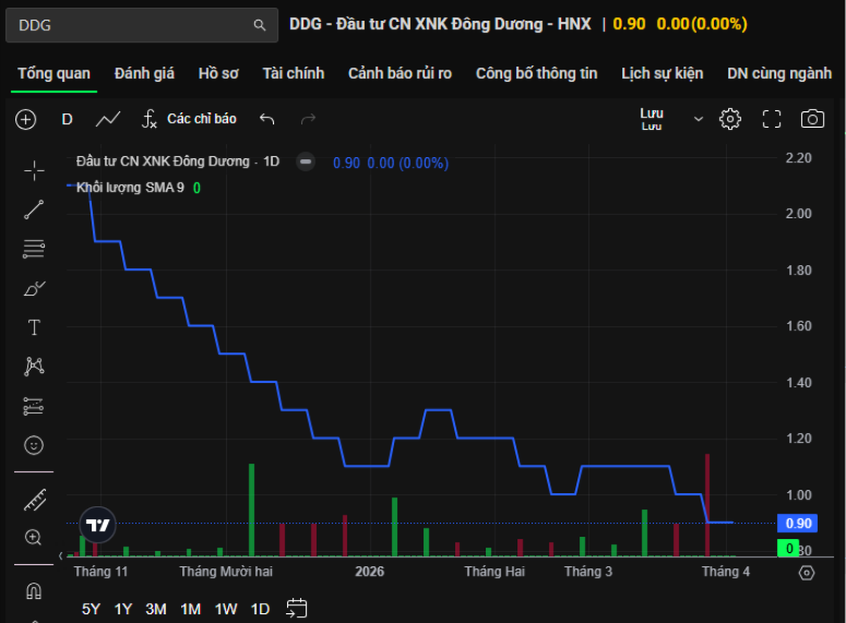 Động thái đăng ký mua cổ phiếu của lãnh đạo doanh nghiệp diễn ra trong bối cảnh thị giá DDG đang duy trì ở vùng thấp. Kết phiên ngày 2/4/2026, cổ phiếu này đóng cửa tại mức 900 đồng/cổ phiếu, đi ngang so với phiên trước và gần như không ghi nhận thanh khoản đáng kể.