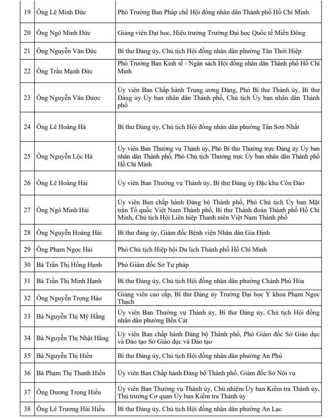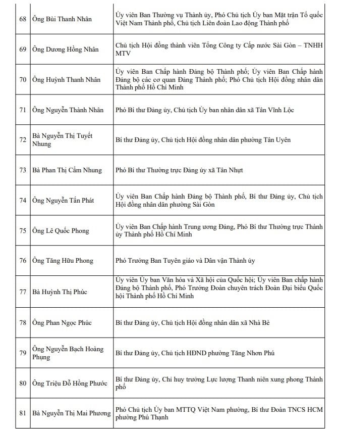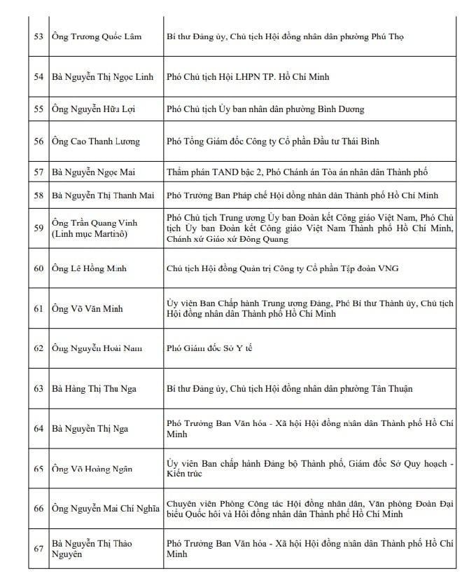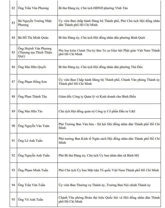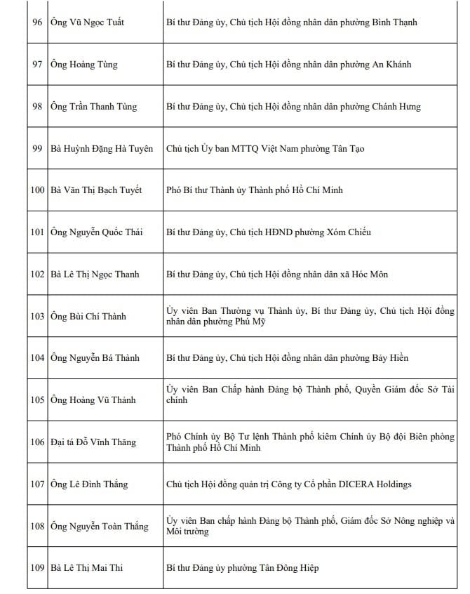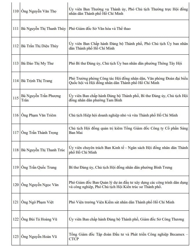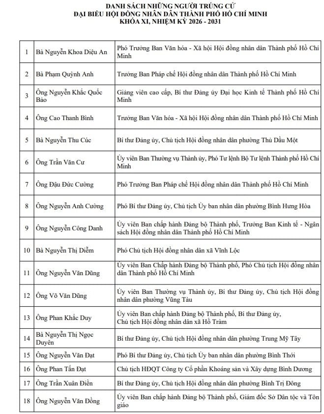 Danh sách 125 người trúng cử đại biểu HĐND TP. Hồ Chí Minh khóa XI, nhiệm kỳ 2026-2031 như sau: