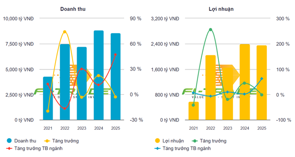 Trong khi đó, Tổng công ty Viglacera (HOSE: VGC) ghi nhận doanh thu quý IV đạt 3.978 tỷ đồng và lợi nhuận sau thuế 639 tỷ đồng, lần lượt tăng 7% và gần 17%. Lũy kế năm 2025, doanh thu đạt gần 13.315 tỷ đồng, tăng 12%, còn lợi nhuận sau thuế đạt 1.594 tỷ đồng, tăng 34%. Doanh thu cho thuê đất giảm nhẹ xuống 3.296 tỷ đồng nhưng không làm thay đổi xu hướng tăng trưởng chung.