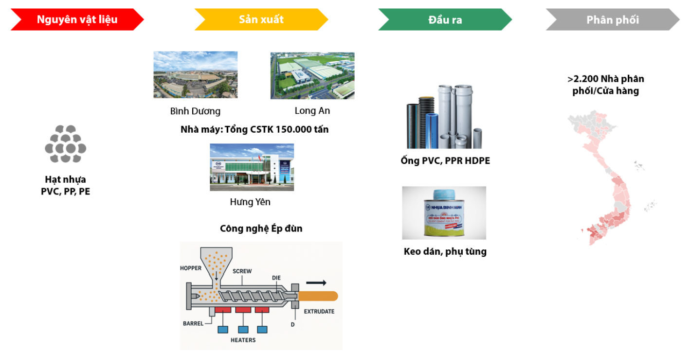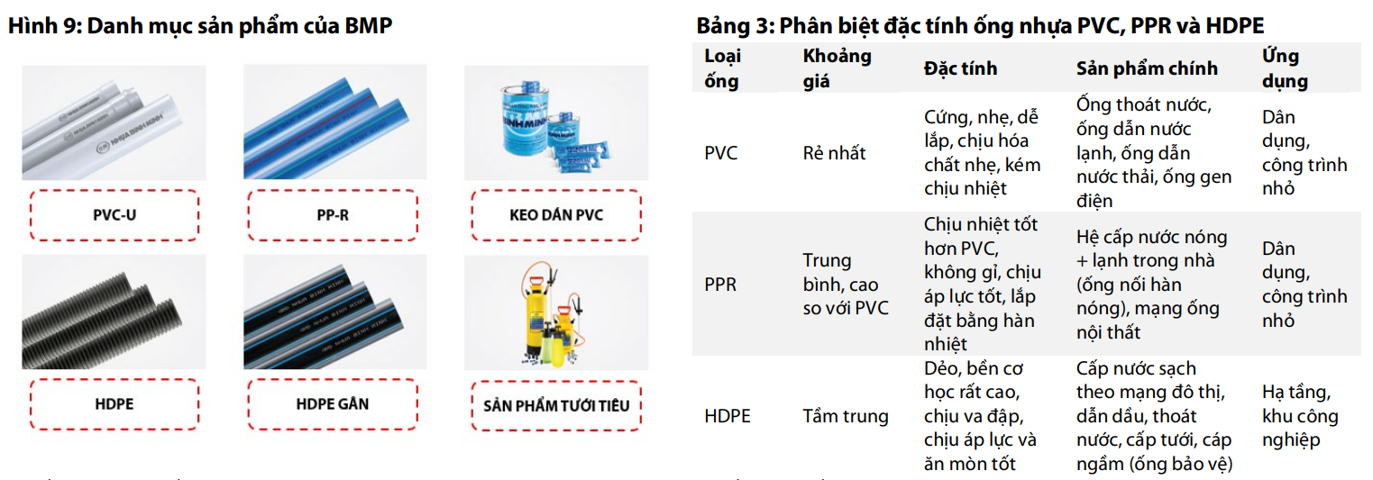 Trên thị trường chứng khoán, Công ty CP Nhựa Bình Minh (BMP) là một trong những doanh nghiệp tiêu biểu gắn với nhóm sản phẩm này, doanh nghiệp hiện vận hành 4 nhà máy với tổng công suất thiết kế khoảng 150.000 tấn/năm, cung cấp các dòng ống nhựa PVC, HDPE và PPR cho cả thị trường dân dụng lẫn hạ tầng kỹ thuật. Riêng tại khu vực phía Nam, thị trường tiêu thụ ống nhựa lớn nhất cả nước, BMP đang nắm thị phần ở mức xấp xỉ 25%, thuộc nhóm dẫn đầu toàn ngành.