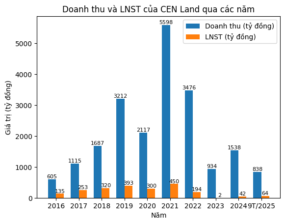 Song song với những diễn biến tại Hoa Tiên Paradise, tình hình tài chính của CEN Land cũng ghi nhận nhiều điểm đáng chú ý. Doanh nghiệp từng đạt đỉnh về doanh thu và lợi nhuận trong năm 2021, trước khi kết quả kinh doanh suy giảm mạnh trong giai đoạn tiếp theo. Năm 2023, lợi nhuận sau thuế chỉ còn ở mức rất thấp, sang năm 2024 và 9 tháng đầu năm 2025 đã có dấu hiệu cải thiện, dù doanh thu vẫn sụt giảm so với cùng kỳ.