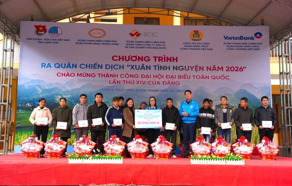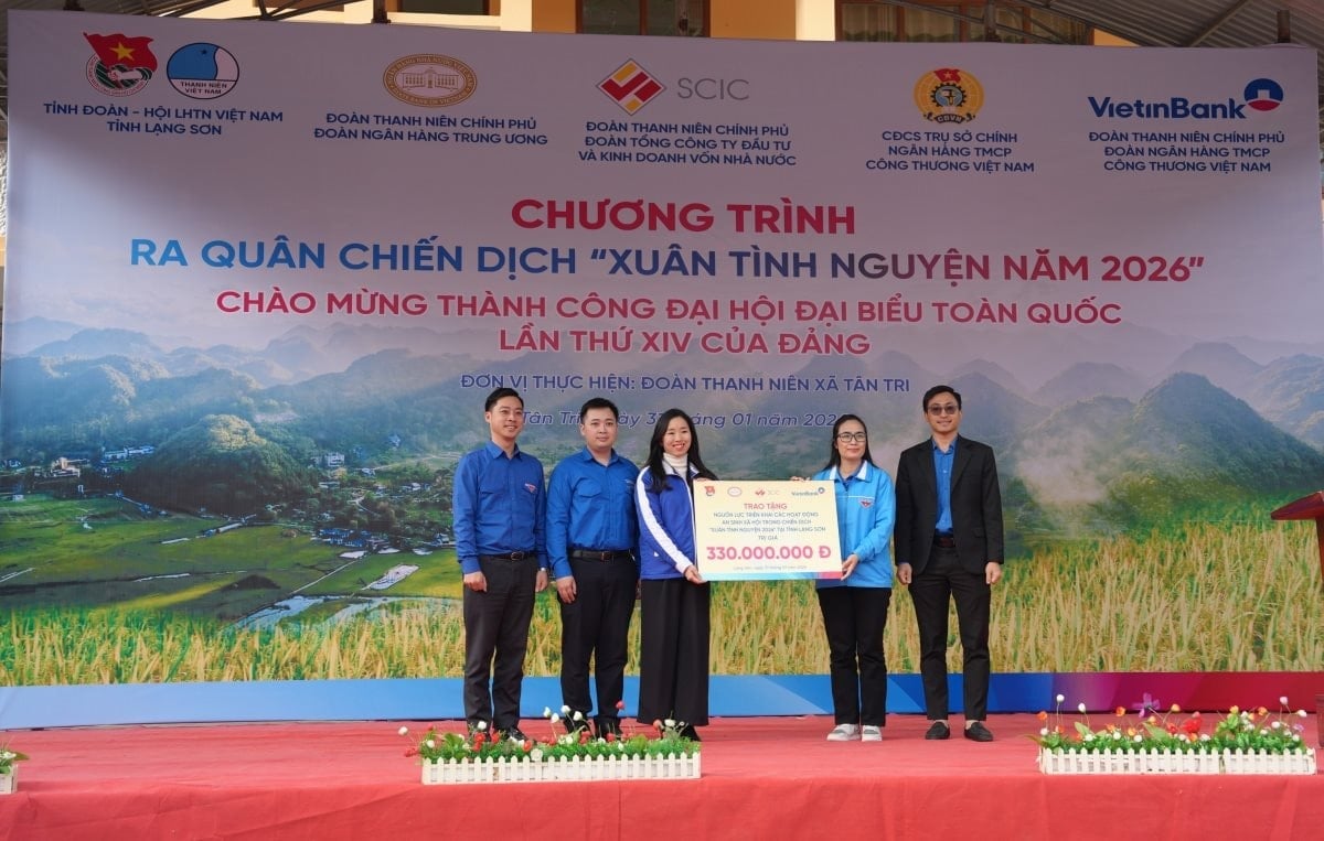 (Banker.vn) Ngày 31/1, Đoàn Thanh niên Ngân hàng Trung ương (NHTW) phối hợp với Tỉnh đoàn, Hội Liên hiệp Thanh niên Việt Nam tỉnh Lạng Sơn, Đoàn Thanh niên Ngân hàng TMCP Công Thương Việt Nam (VietinBank), Đoàn Thanh niên Tổng công ty Đầu tư và Kinh doanh vốn nhà nước (SCIC) tổ chức Chương trình ra quân Chiến dịch “Xuân tình nguyện năm 2026" tại các xã Hữu Liên và Tân Tri, tỉnh Lạng Sơn.