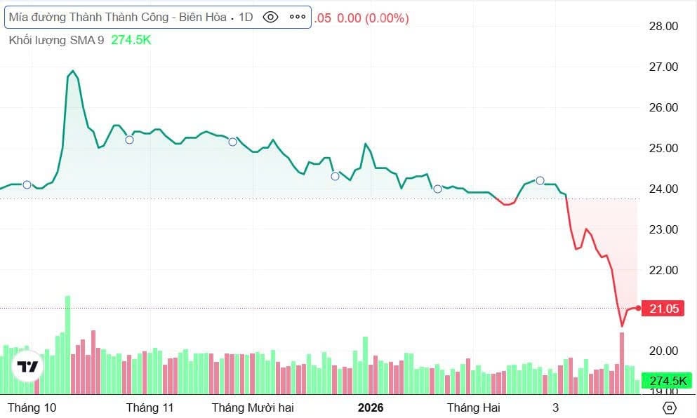 Động thái thoái bớt vốn diễn ra sau một giai đoạn biến động mạnh của cổ phiếu SBT. Trong năm 2025, mã này từng tăng từ vùng quanh 10.000 đồng/cổ phiếu lên gần 28.000 đồng/cổ phiếu vào tháng 10, tương ứng mức tăng gần 150%. Thanh khoản ở giai đoạn cao điểm cũng lên khoảng 3 triệu cổ phiếu mỗi phiên. Tuy nhiên, sau khi lập đỉnh, cổ phiếu bắt đầu điều chỉnh và hiện lùi về quanh vùng 21.000 đồng/cổ phiếu.