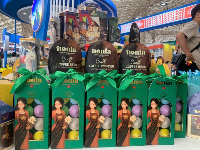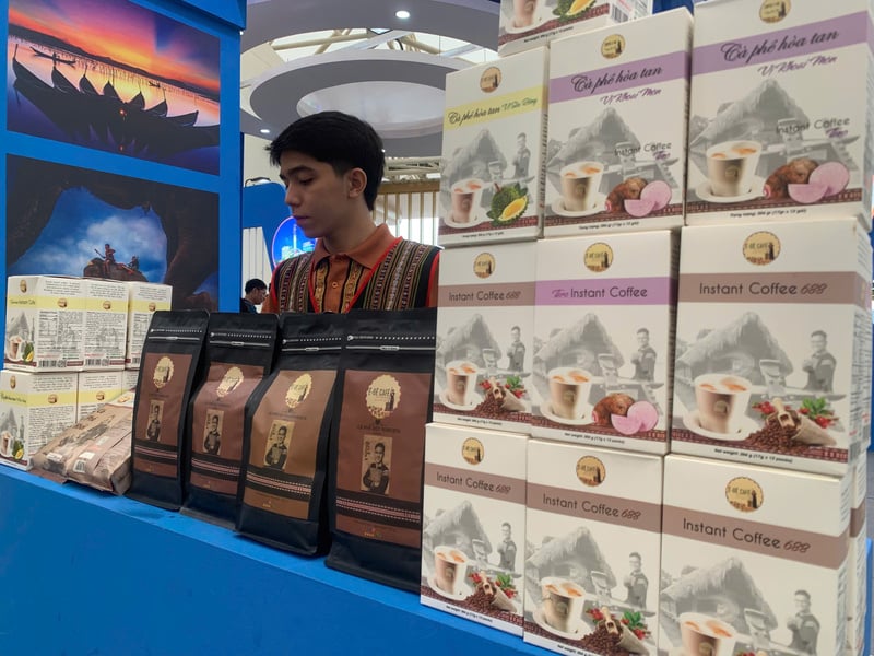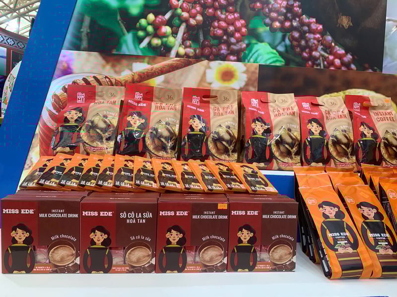 Sản phẩm cà phê mang thương hiệu ở Đắk Lắk tại Hội chợ Mùa Thu lần thứ nhất – 2025. Ảnh: Nguyễn Thành